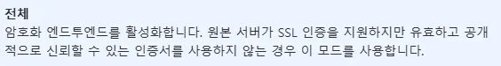 - 그리고 CloudFlare에는 CloudFlare Page라는 정적 파일 호스팅 기능도 제공하기 때문에, 이를 사용하기 위해 CloudFlare를 사용하지 않는 것 보다는, TLS 설정을 “전체”로 변경해 전체 서비스 간의 통신이 암호화 되도록 하였습니다.